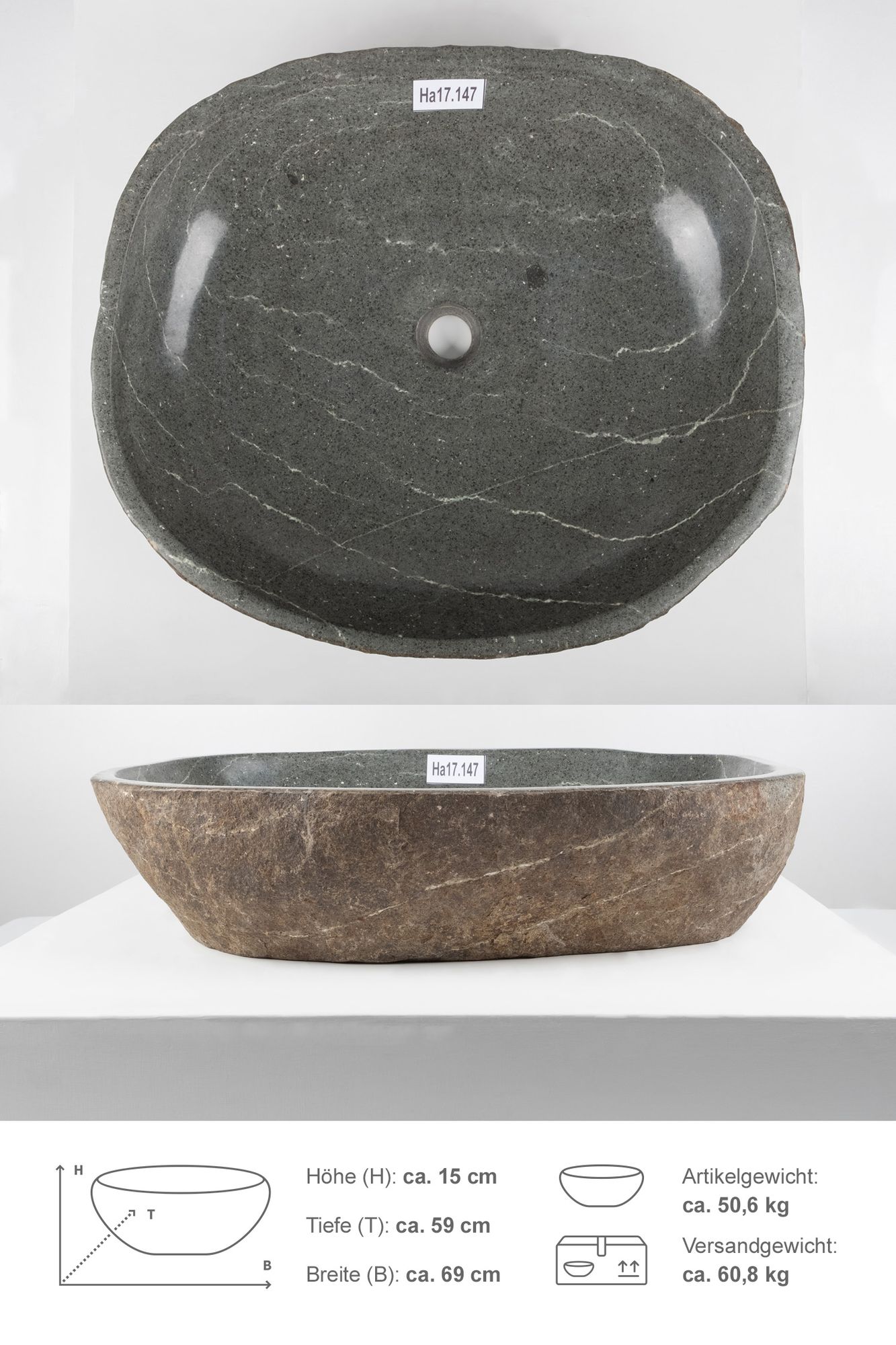 Unterschiede in der Form, Farbgebung, Schattierung und Struktur sind das Zeichen für die Individualität eines jeden Waschbeckens. Bei dem Artikelbild handelt es sich um ein Beispiel. Alle derzeit vorrätigen Waschbecken sind in der Bildergalerie (Hinweis zur Produktauswahl) mit Maßangaben abgebildet. Für weitere Fragen zum Produkt stehen wir Ihnen gerne zur Verfügung.