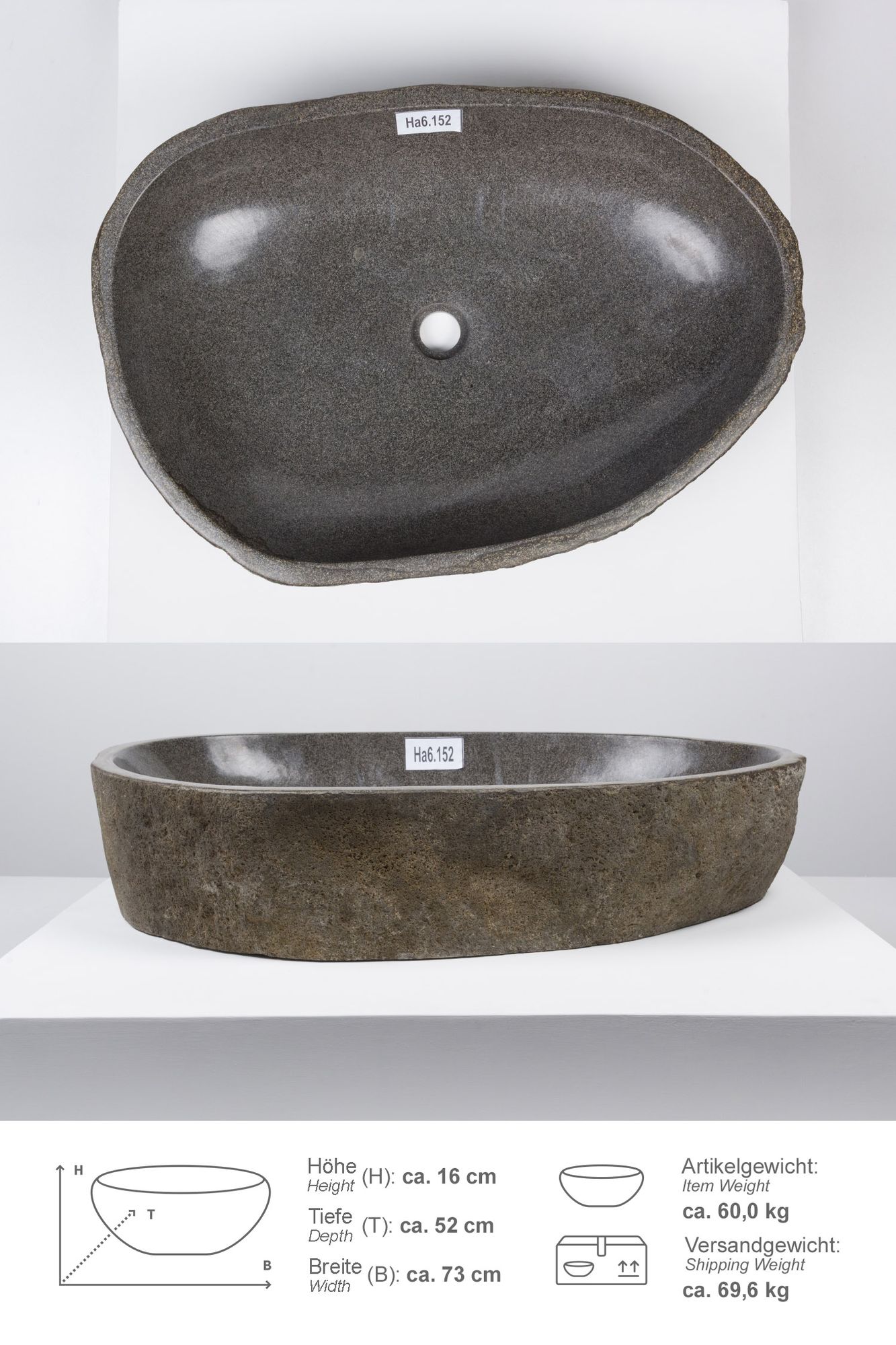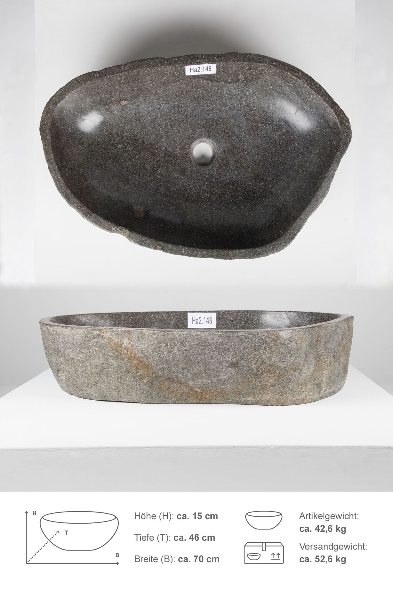 Naturstein Waschbecken 70 cm