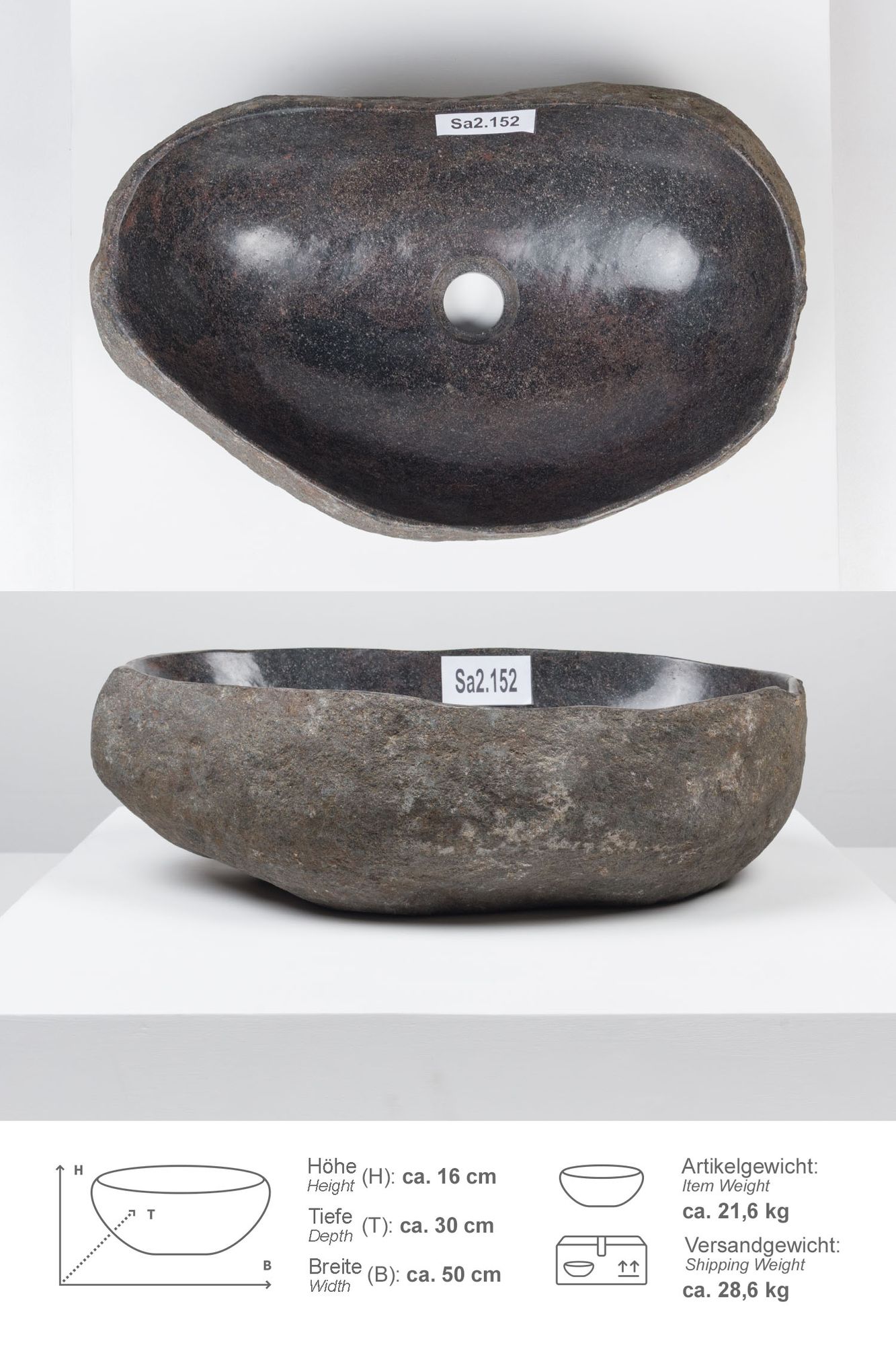 Naturstein Waschbecken 50 cm mit Naturkante