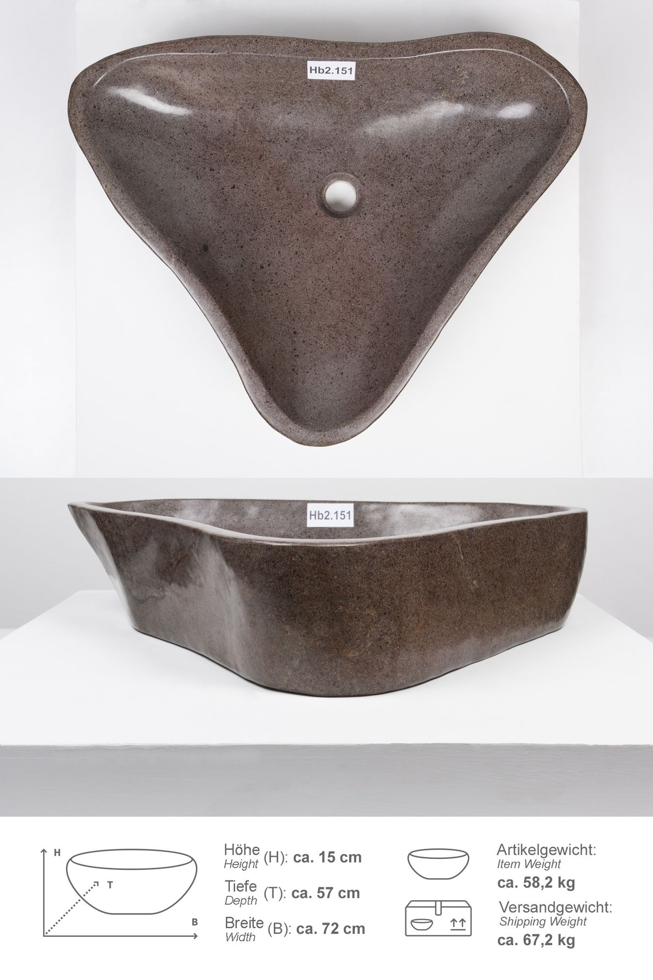 Dieses ursprüngliche Waschbecken aus Naturstein wurde aus Flusssteinen javanesischer Tropenflüsse geschlagen. Der Naturstein ist besonders unempfindlich und pflegeleicht. Das Waschbecken ist innen und außen poliert. Jeder Flußstein hat über Jahrtausende einen langen Weg durch die Tropenflüße Indonesiens bis in Ihr Zuhause zurückgelegt. Unterschiede in der Form, Farbgebung, Schattierung und Struktur sind das Zeichen für die Individualität eines jeden Waschbeckens. Bei dem Artikelbild handelt es sich um ein Beispiel. Alle derzeit vorrätigen Waschbecken sind in der Bildergalerie (Hinweis zur Produktauswahl) mit Maßangaben abgebildet. Für weitere Fragen zum Produkt stehen wir Ihnen gerne zur Verfügung.