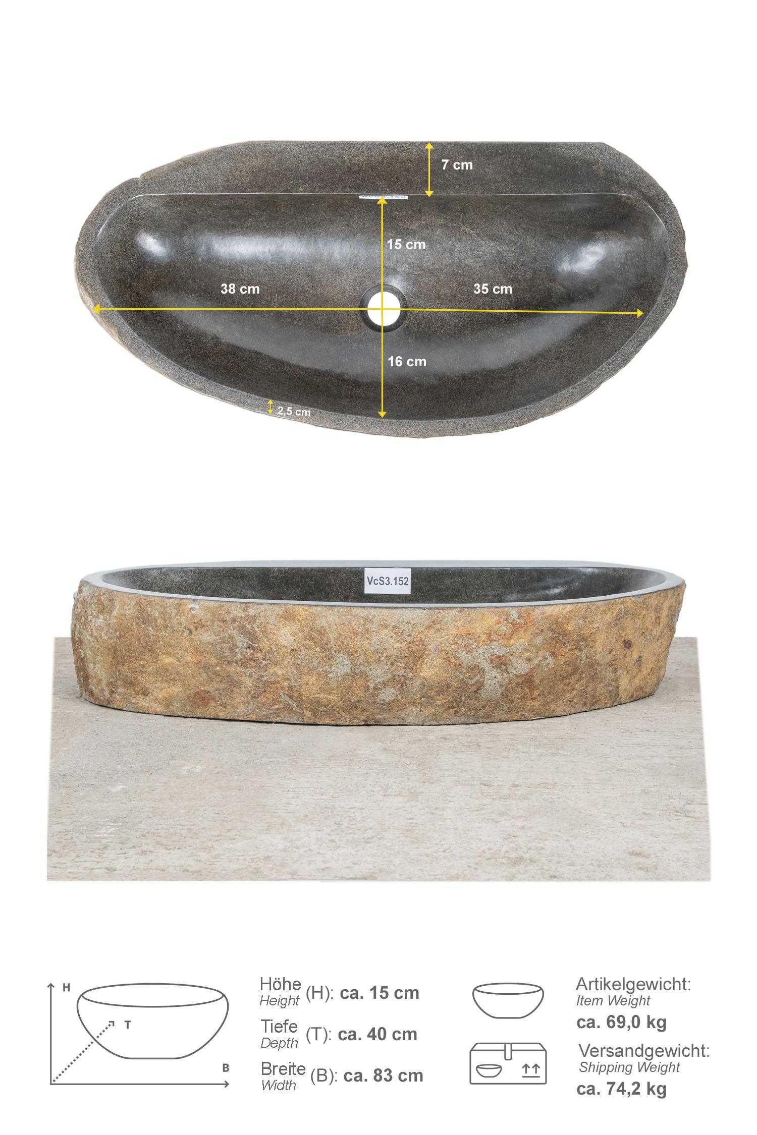80 cm breites Natursteinwaschbecken aus Flussstein mit gerader Rückwand