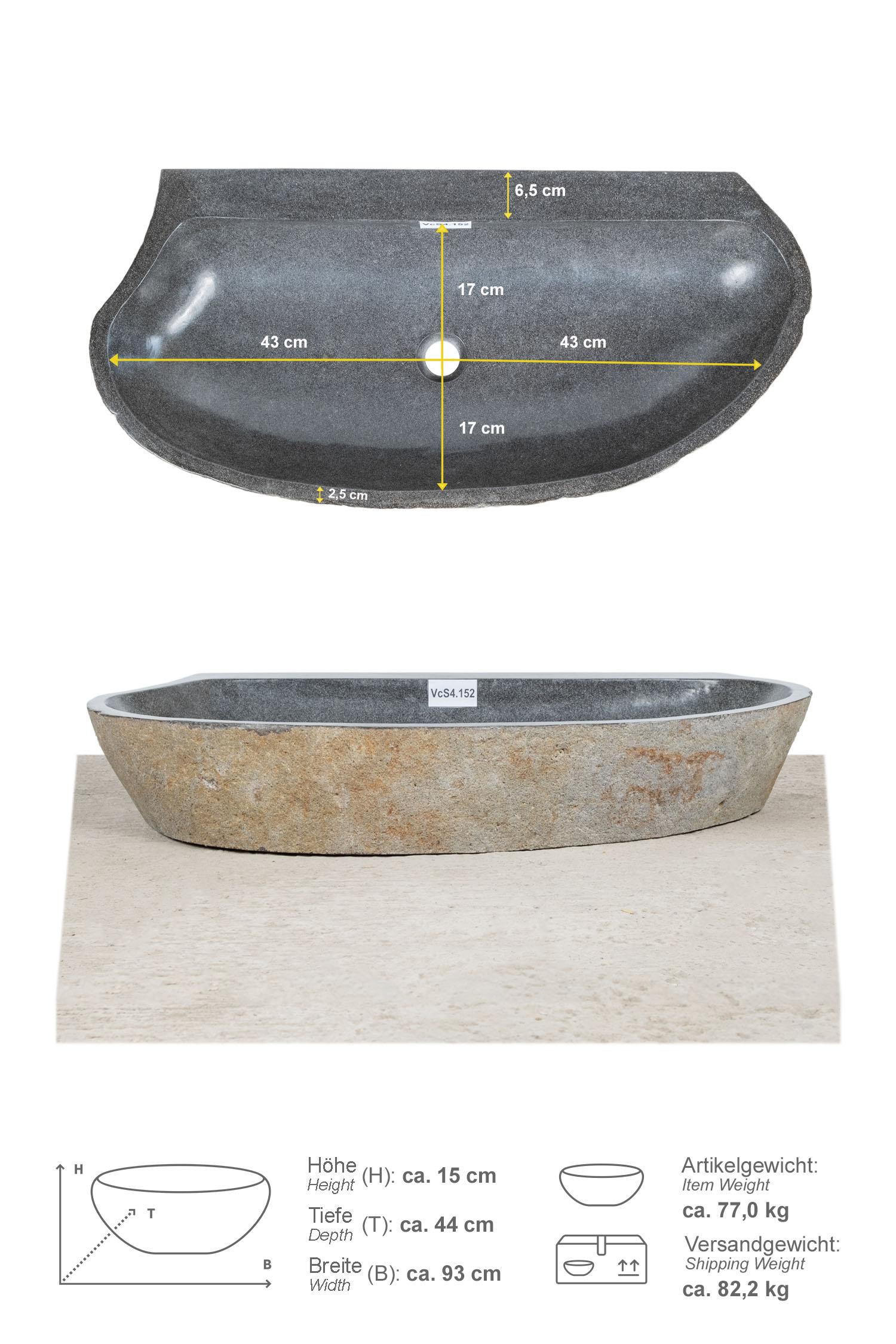 Dieses Waschbecken aus Naturstein wurde aus einem Flussstein eines javanesischen Tropenflusses gefertigt. In Handarbeit wurde das Steinwaschbecken so bearbeitet, dass es eine gerade Rückwand besitzt. Es eignet sich daher bestens, um direkt an die Badezimmerwand platziert zu werden.