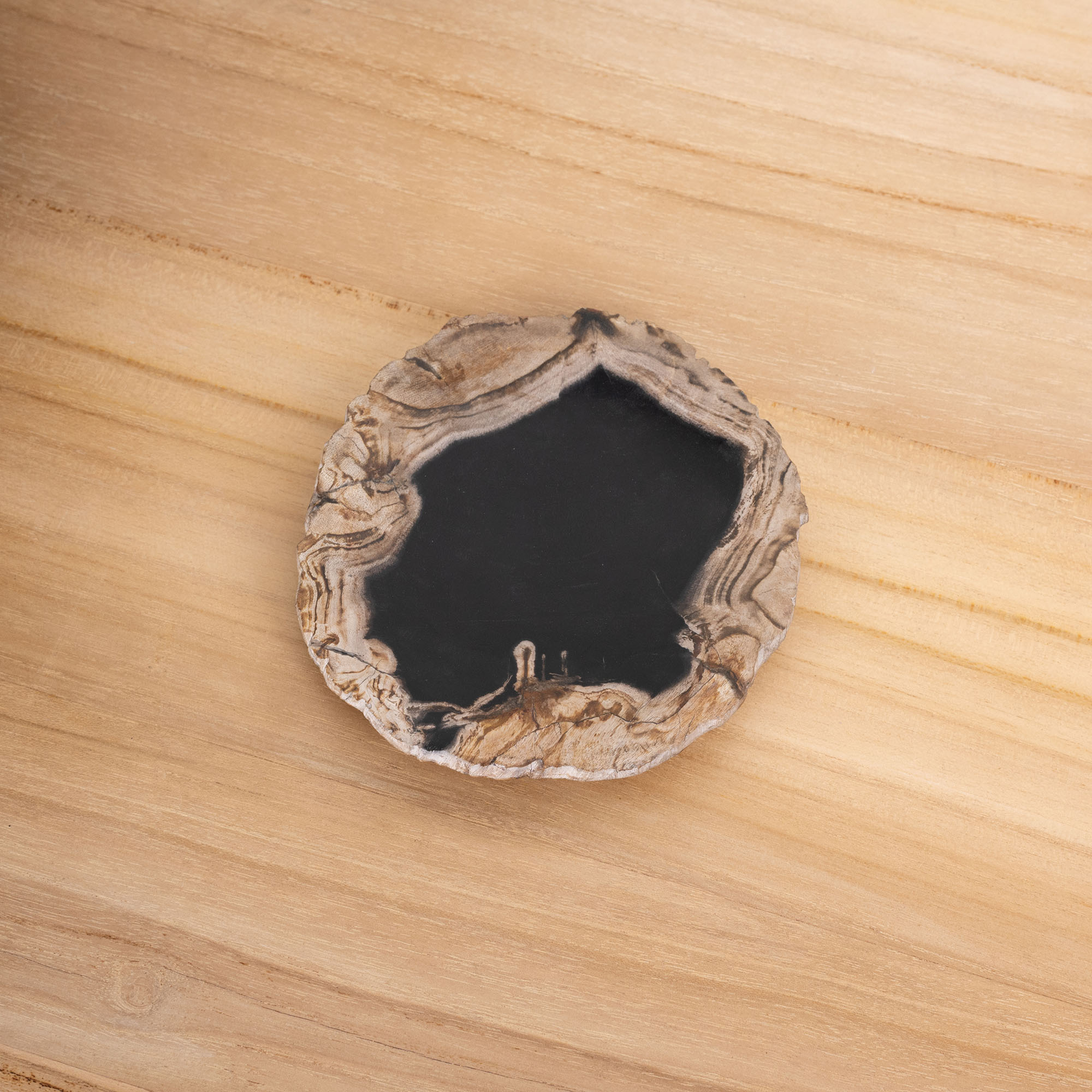 Diese edle Seifenschale aus fossilem Holz vereint natürliche Geschichte mit zeitlosem Design. Die innen polierte Oberfläche sorgt für eine glatte, pflegeleichte Ablage, während die einzigartige Maserung jedes Stück zu einem Unikat macht. Robust, langlebig und ein stilvoller Akzent für jedes Badezimmer.