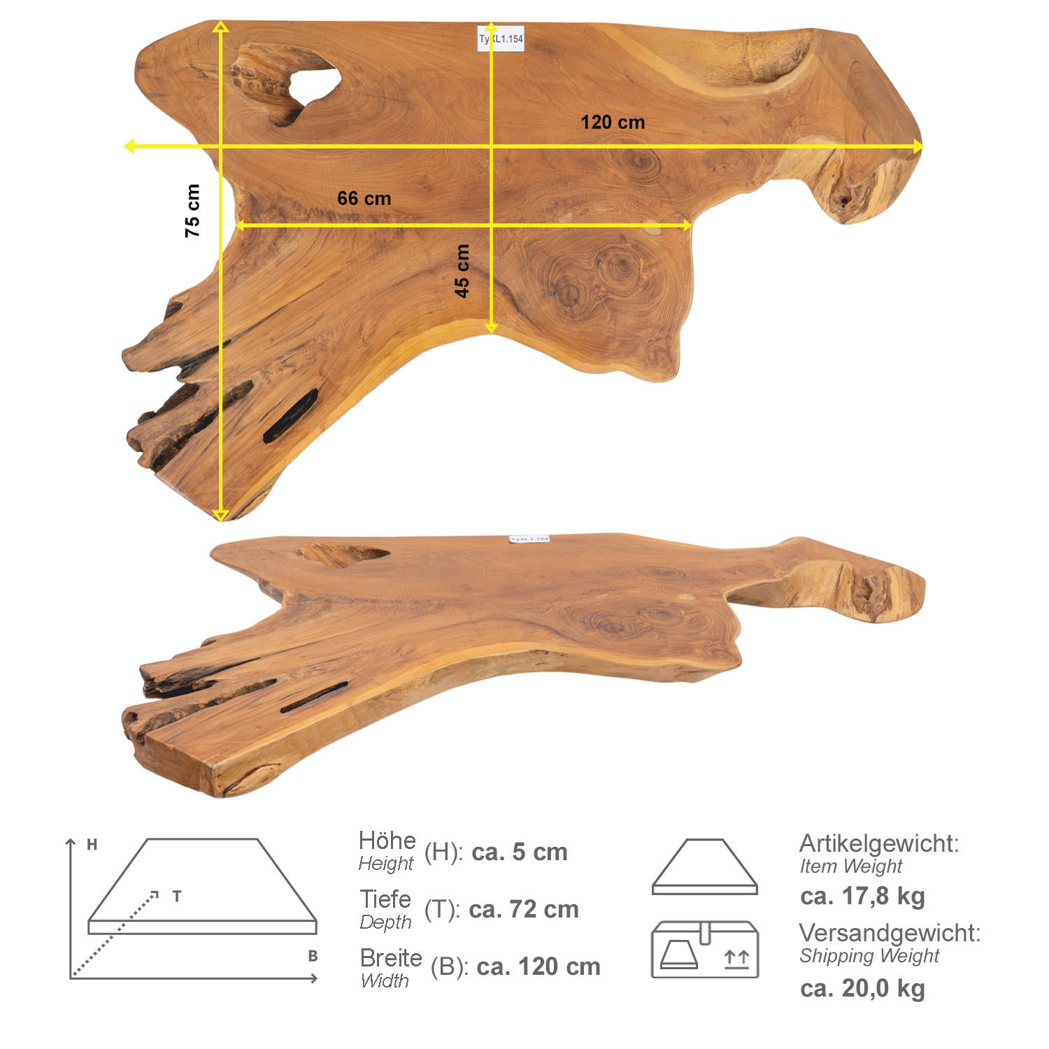 Im Lieferumfang erhalten Sie Ihre ausgewählte Teakholz-Waschtischplatte.