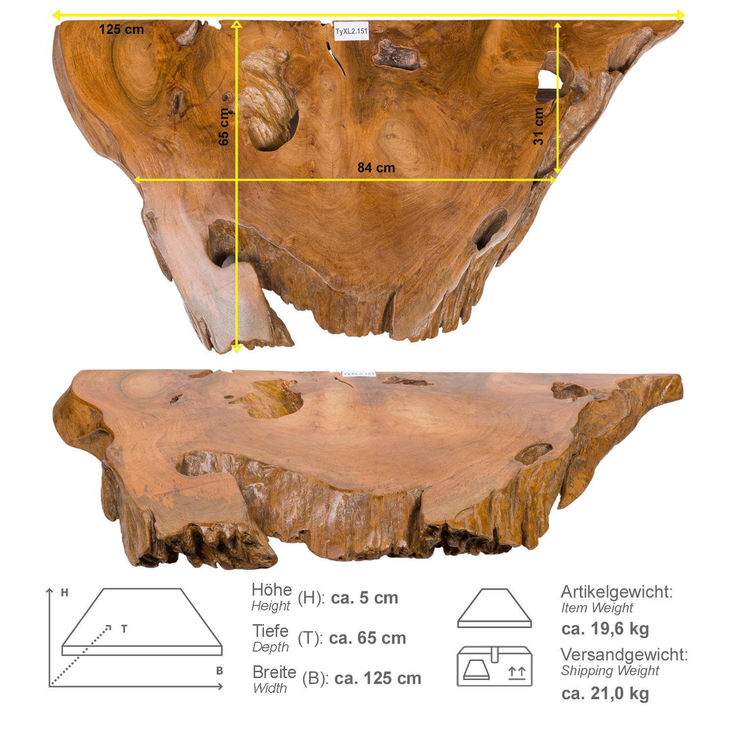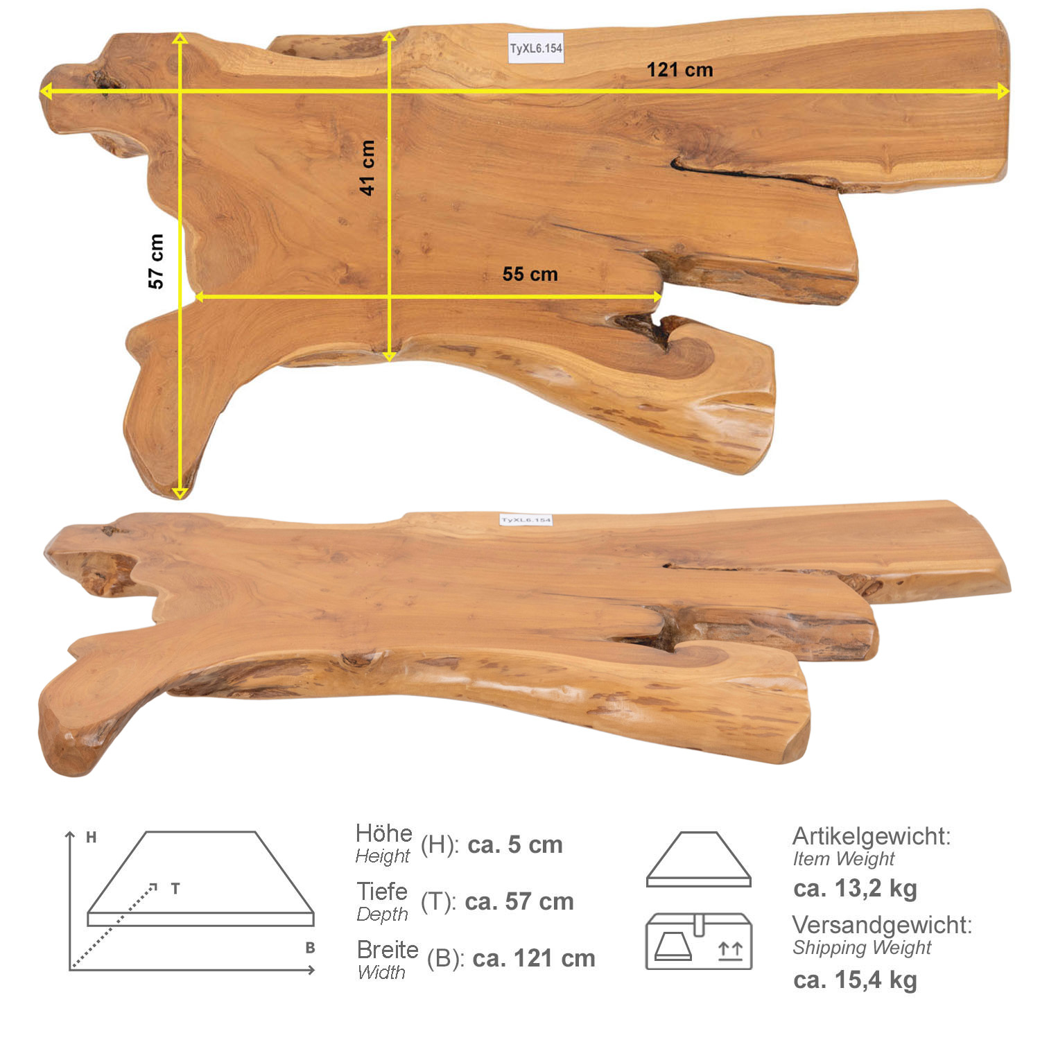 Teak Holz Waschtischplatte LYLAC Gr. XL ab 120 cm braun lasiert
