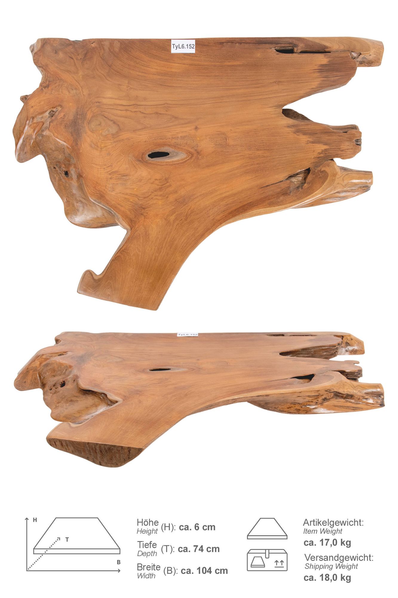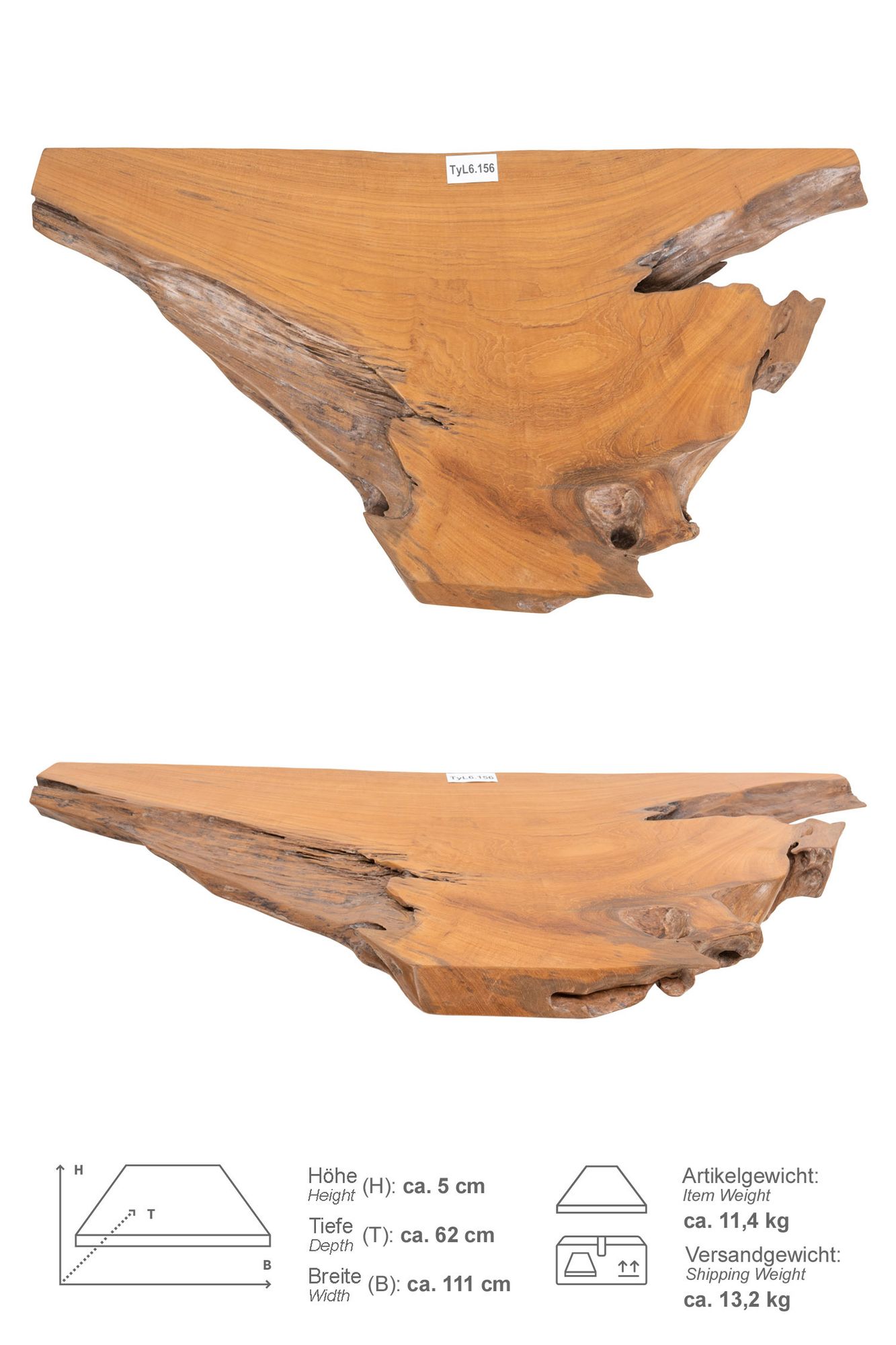 Im Lieferumfang erhalten Sie die Teakholz Waschtischplatte in Grösse M. Unter "ZUR BILDERGALERIE" suchen Sie sich Ihren persönlichen Wunschartikel aus.