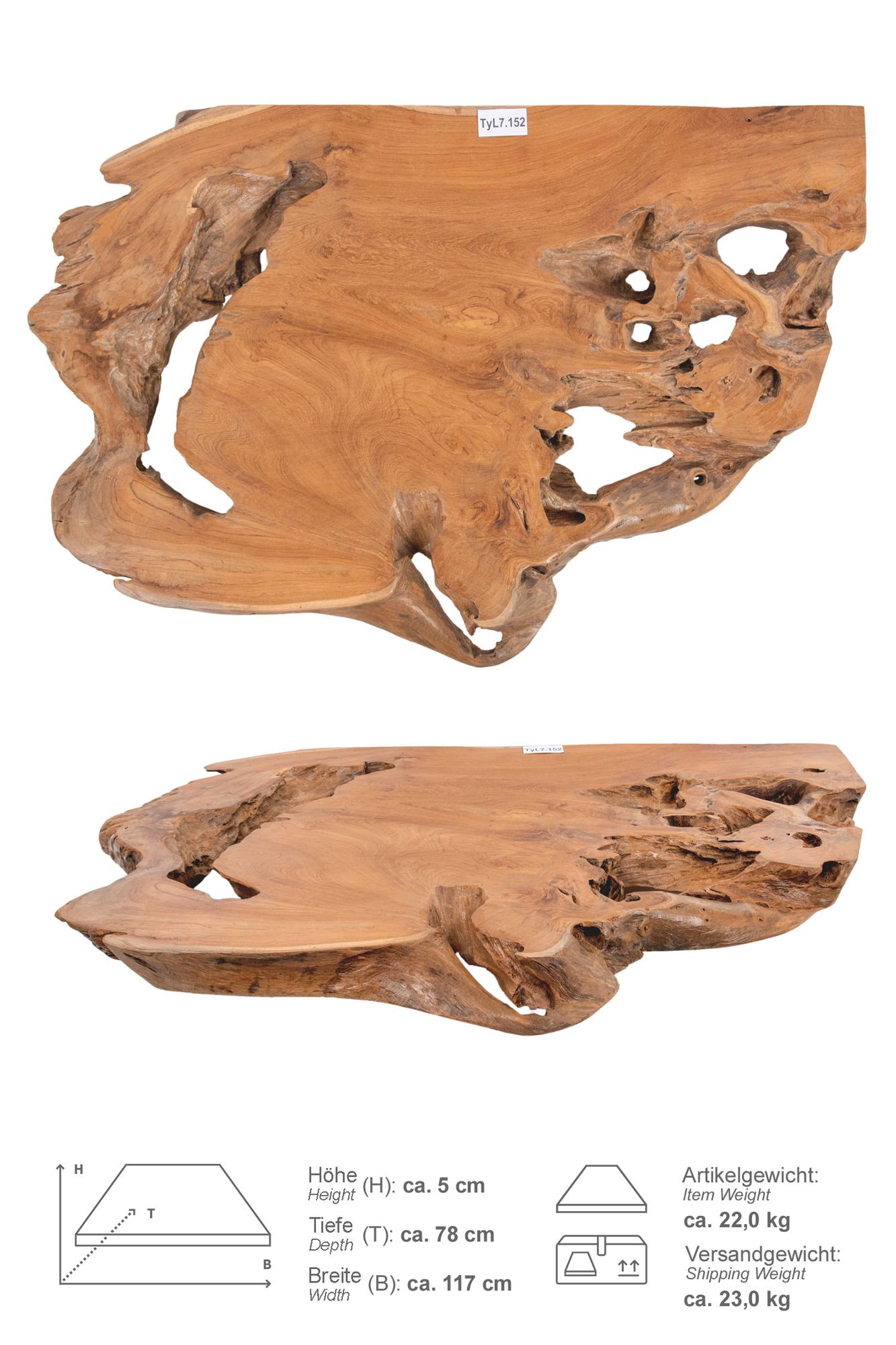 Für Ihr Waschbecken haben wir die perfekte Holzplatte aus durchgetrocknetem Teakholz.