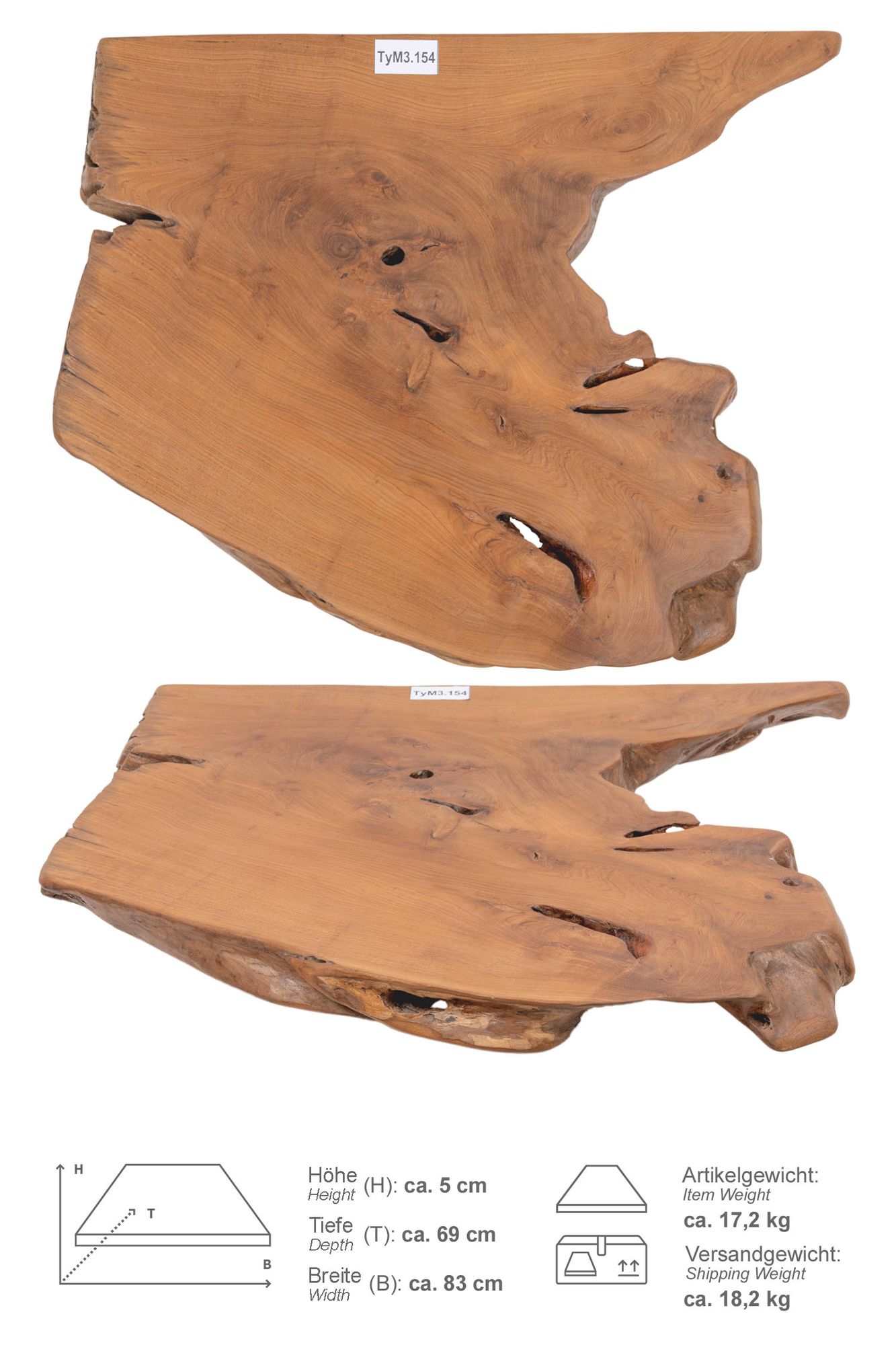 Nach der früheren Nutzung wird das Teakholz in Handarbeit zu einer schönen Waschtischplatte gefräst und aufwendig nachgearbeitet und geschliffen und mit Harz lasiert. Die Platte aus Holz ist sehr unempfindlich und hat damit eine lange Nutzungsdauer. Auch werden Sie beim Pflegen und Reinigen der Waschtischplatte unter Ihrem Waschbecken keine Probleme haben. Das Holz bleibt dank seiner natürlichen Öle auf seiner Oberfläche stets glänzend und natürlich schön.