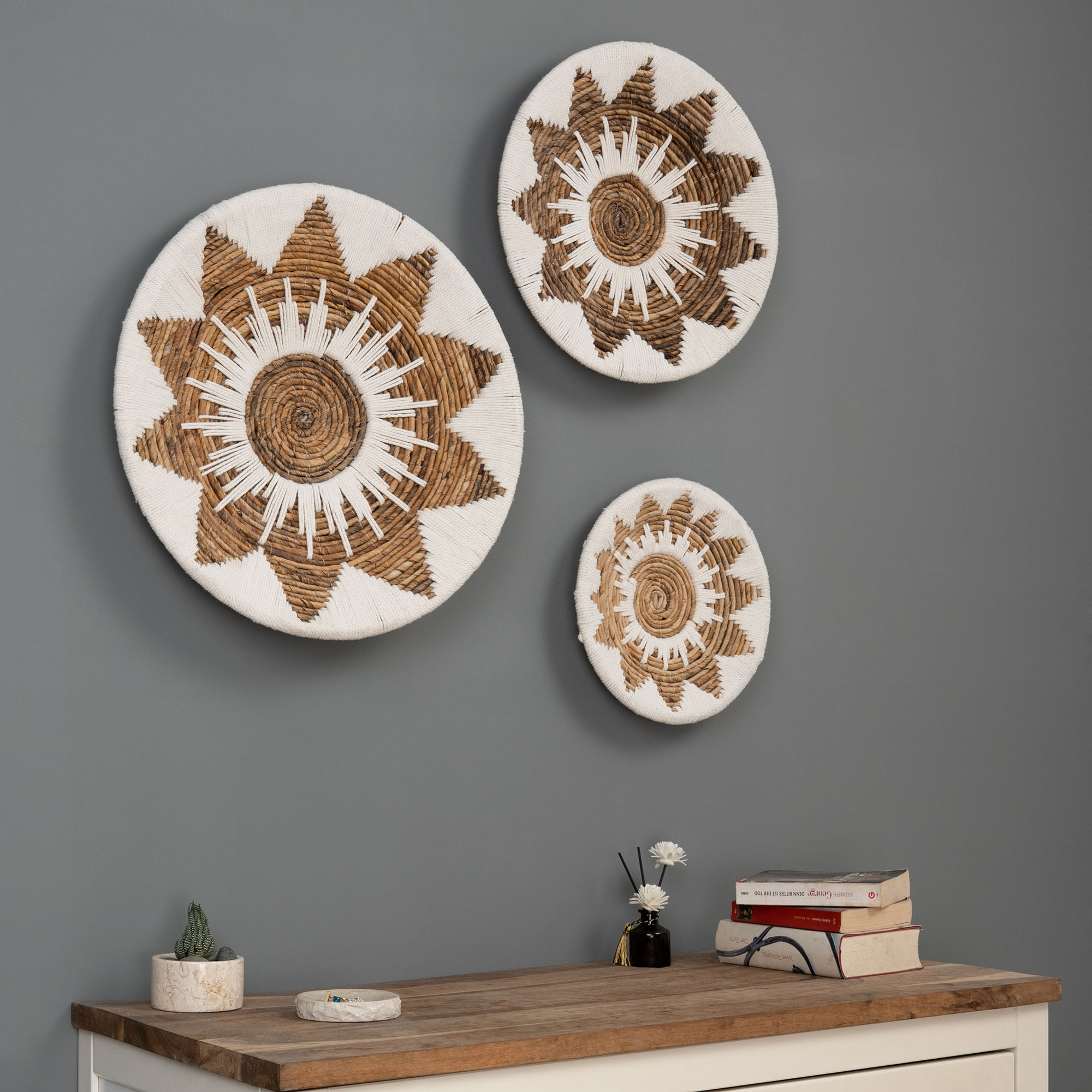Ob einzeln als eleganter Akzent oder in Kombination als Wandarrangement – die Wandteller aus Bananenfaser sind echte Hingucker und passen perfekt zu Boho-, Scandi- oder Ethno-Einrichtungen.