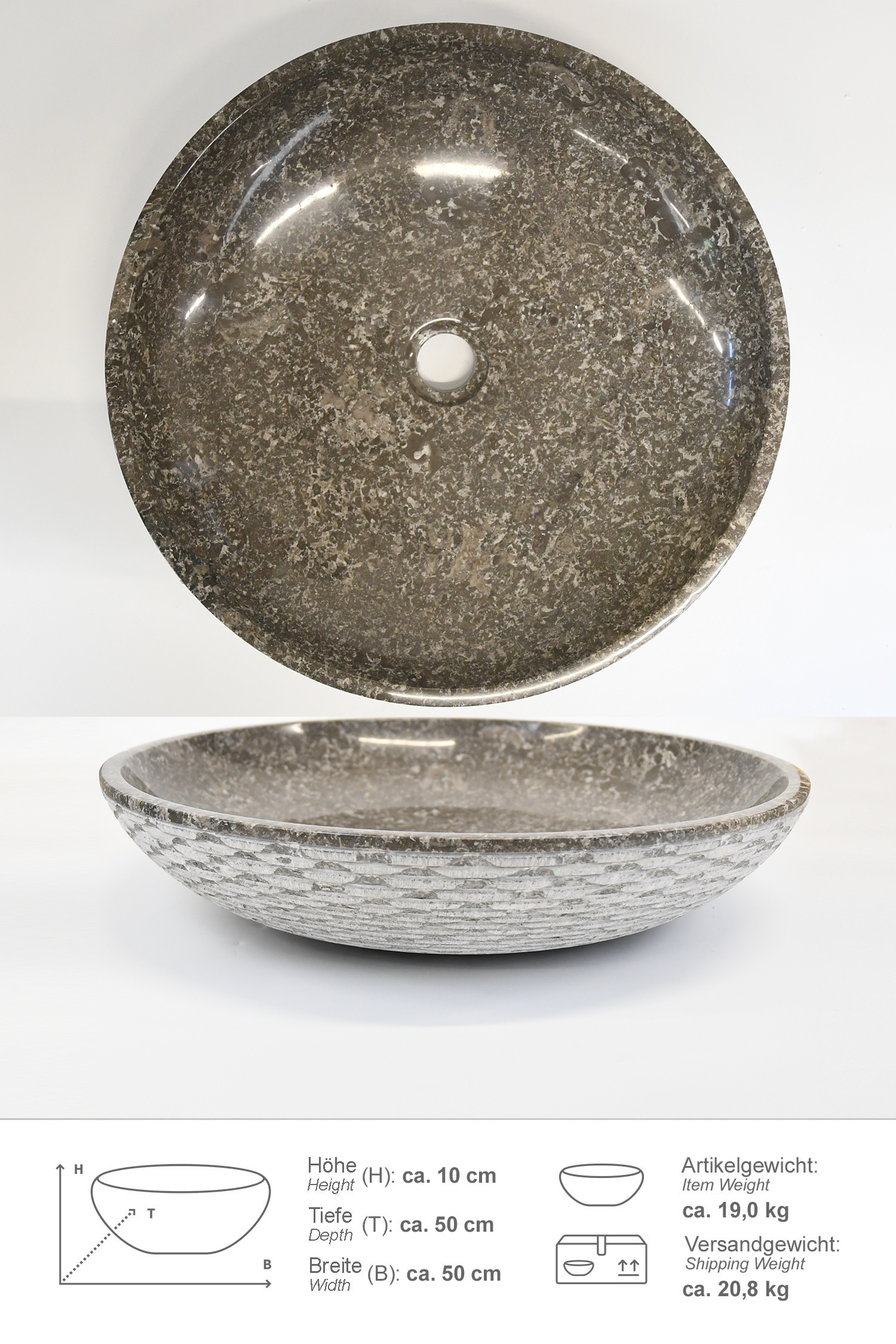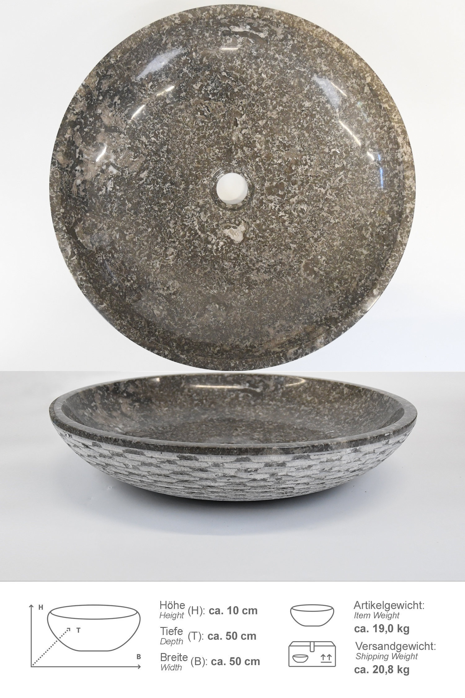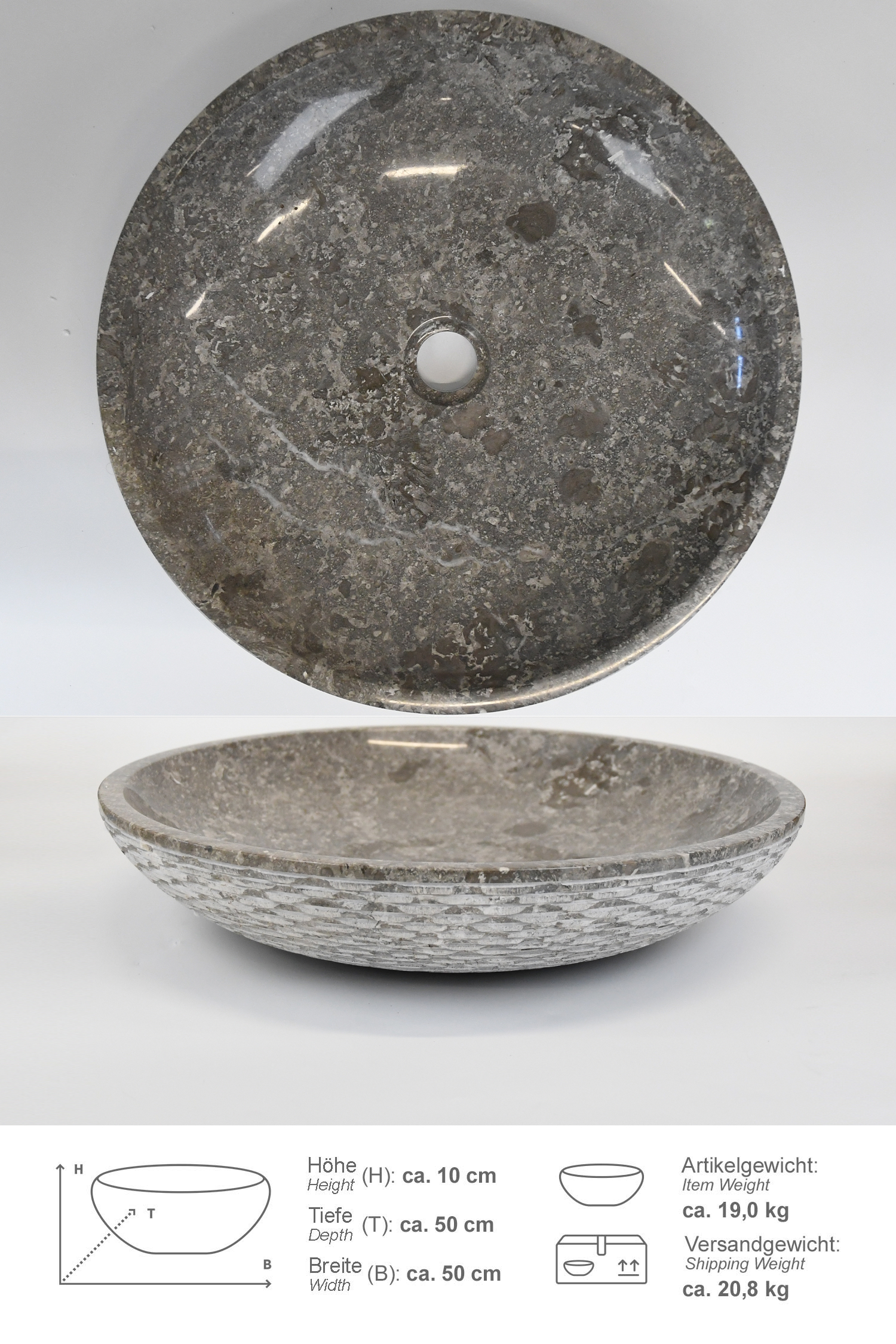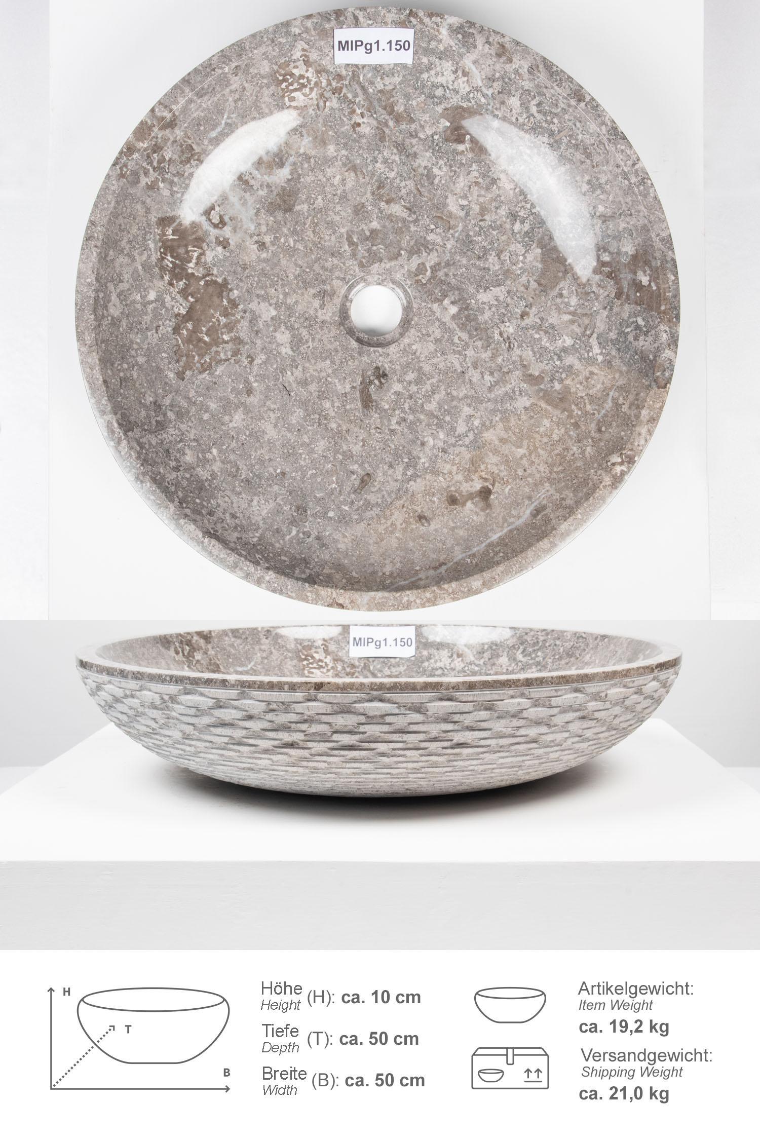 Marmor Waschbecken LEMPER 50 cm grau rund