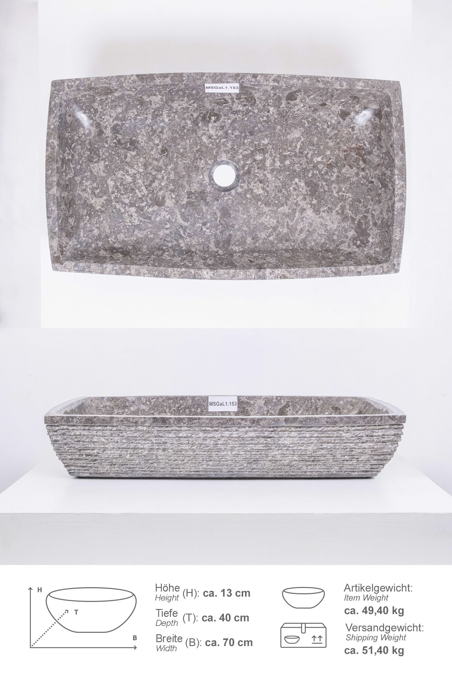Marmor Waschbecken MARA 70 cm breit