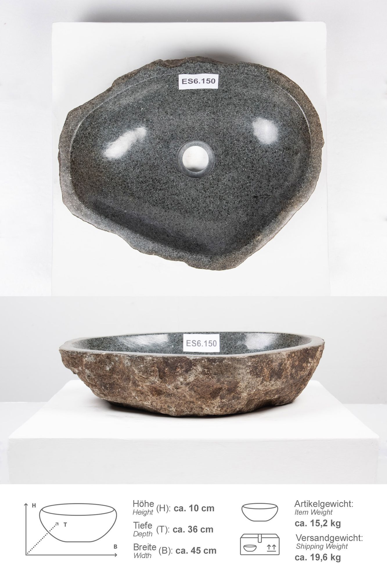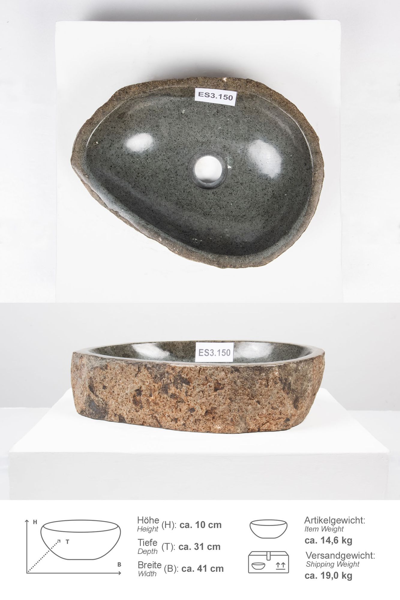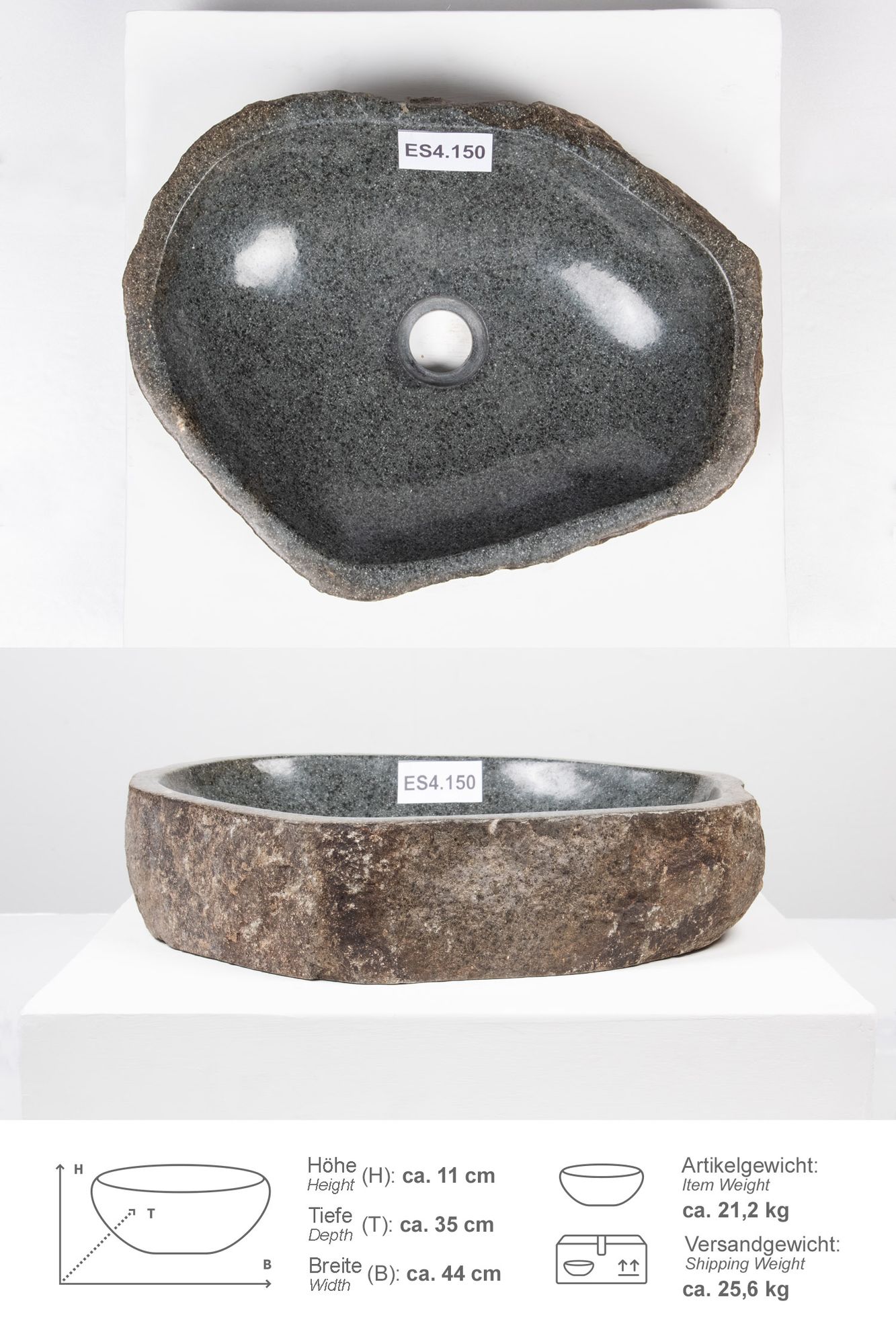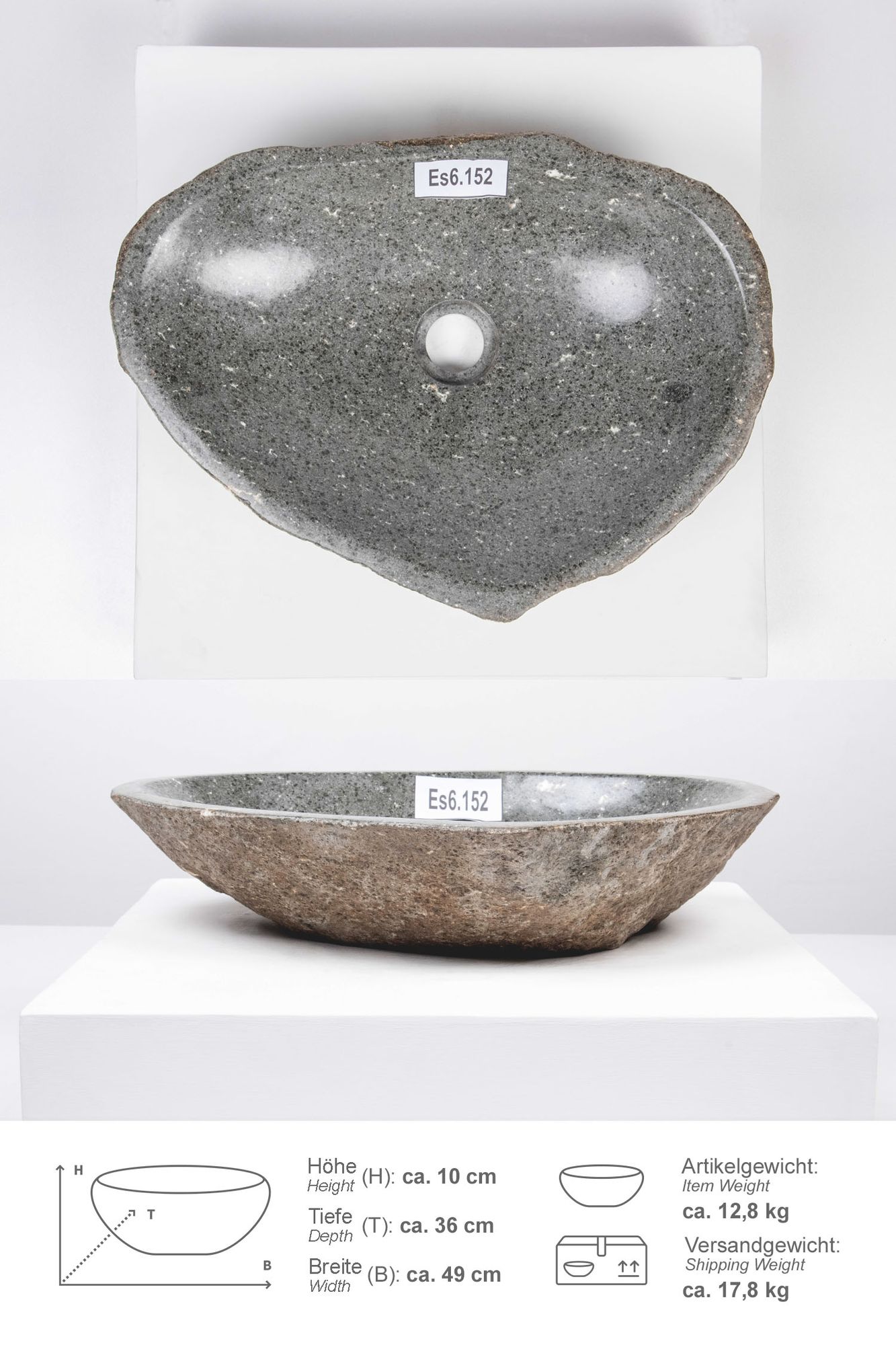 Das Waschbecken ist innen poliert und außen in der natürlichen Form des Steines naturbelassen. Jeder Flußstein hat über Jahrtausende einen langen Weg durch die Tropenflüße Indonesiens bis in Ihr Zuhause zurückgelegt.