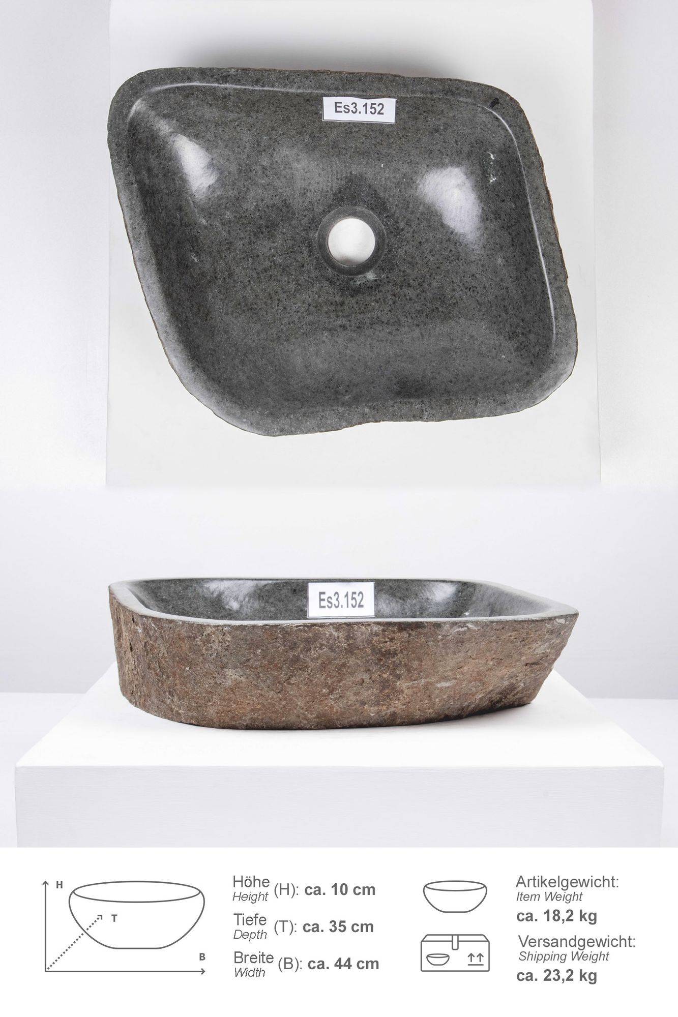 40 cm rundes Steinwaschbecken MEGALITH aus indonesischem Flussstein in natürlichem Schwarzton