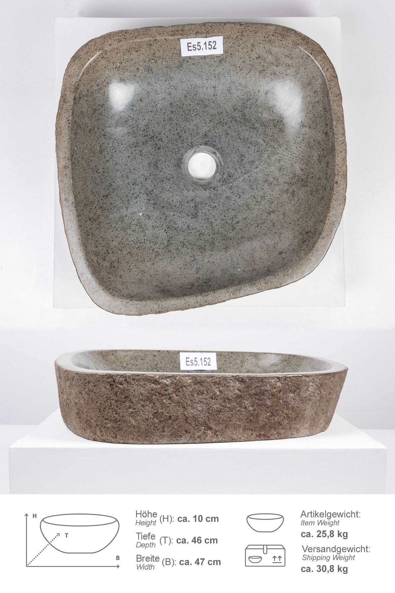 Dieses ursprüngliche Waschbecken aus Naturstein wurde aus Flußsteinen javanesischer Tropenflüße geschlagen. Der Naturstein ist besonders unempfindlich und pflegeleicht.
