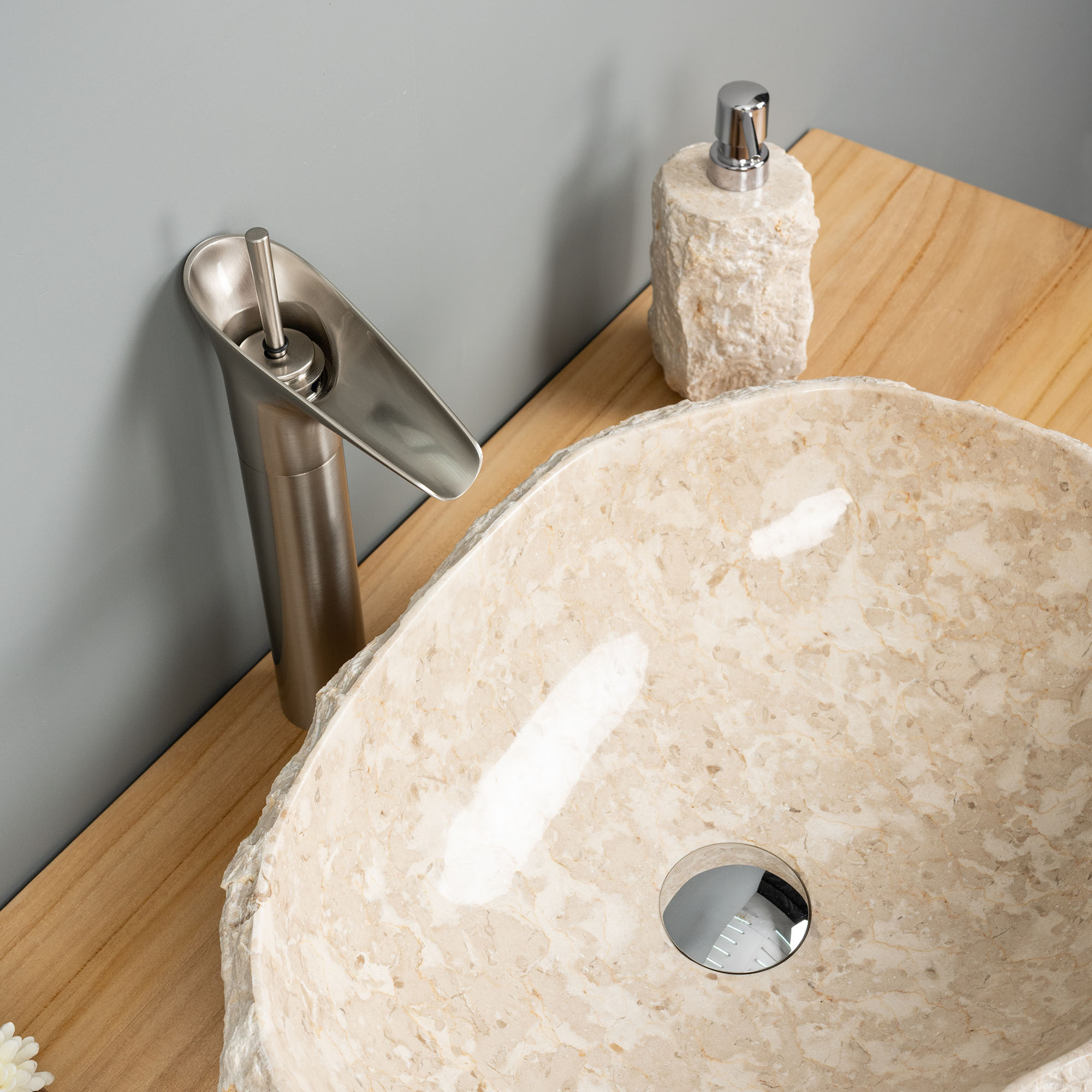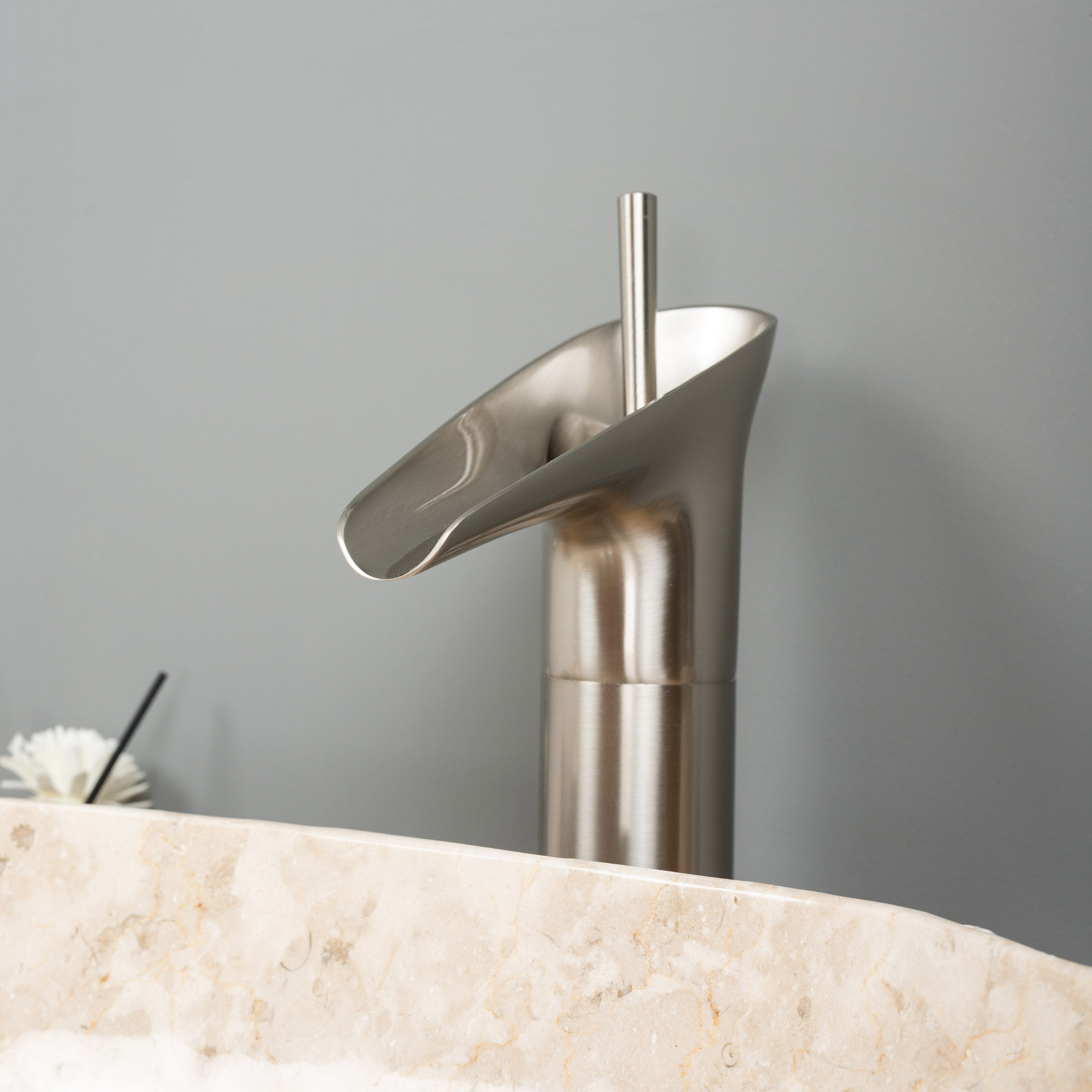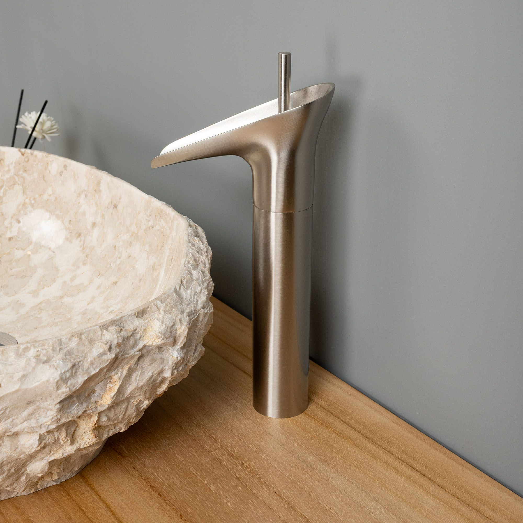 Edle Waschtischarmatur in Silber – Breiter Wasserfall für mehr Eleganz