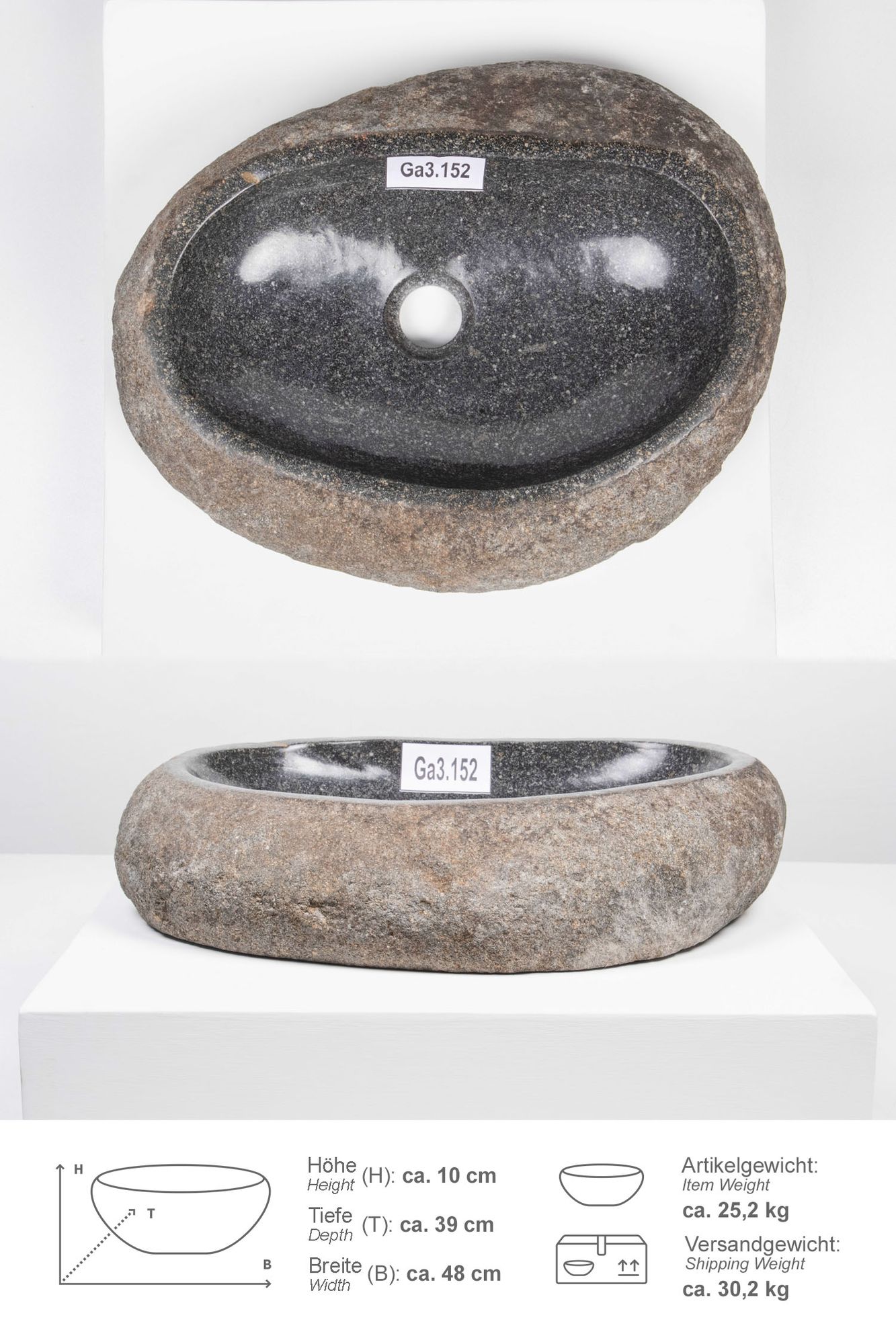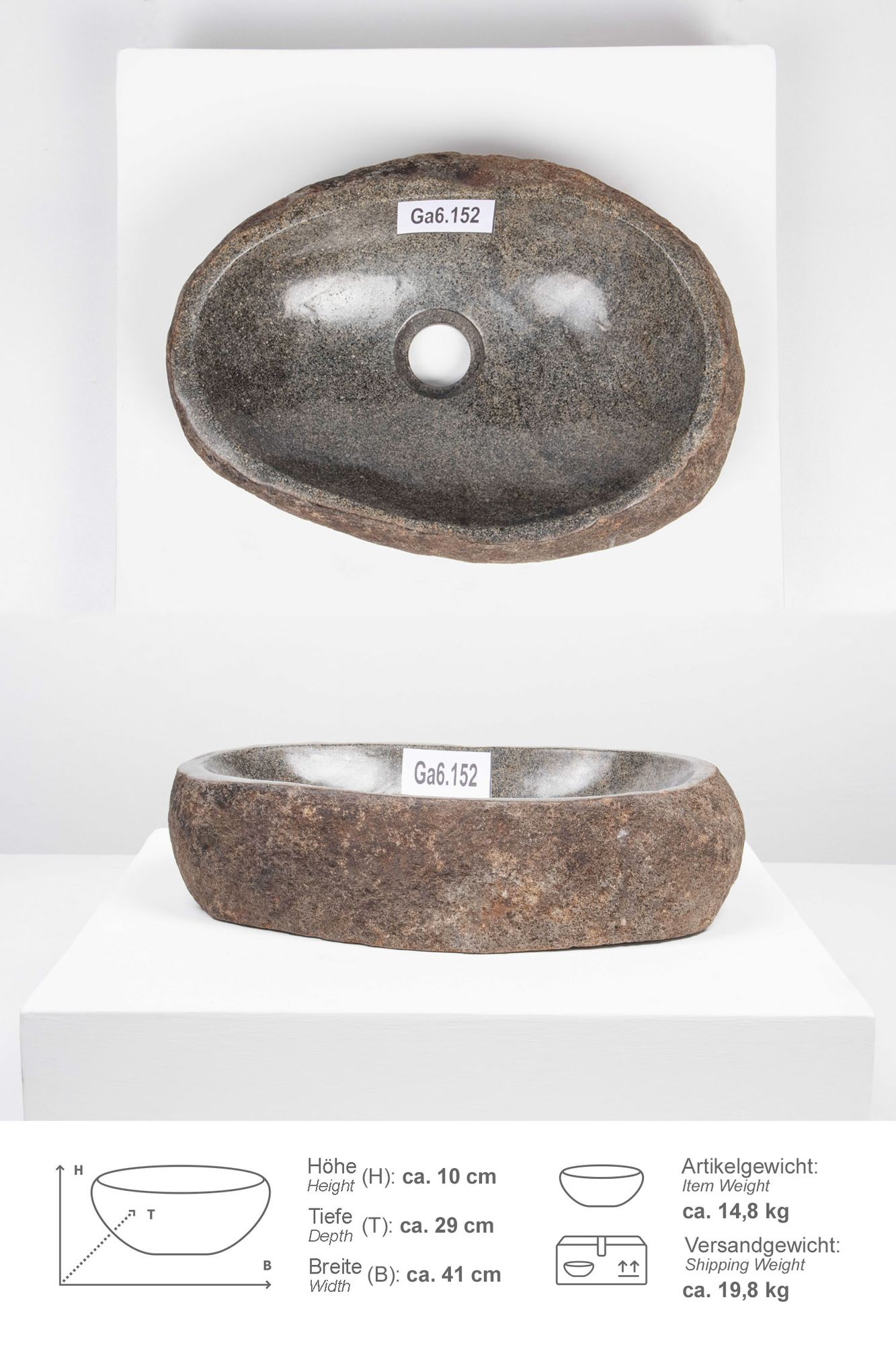 Alle unsere Flussstein-Waschbecken stammen aus Indonesien und wurde in fairem Handel in Handarbeit als absolute Unikat produziert.