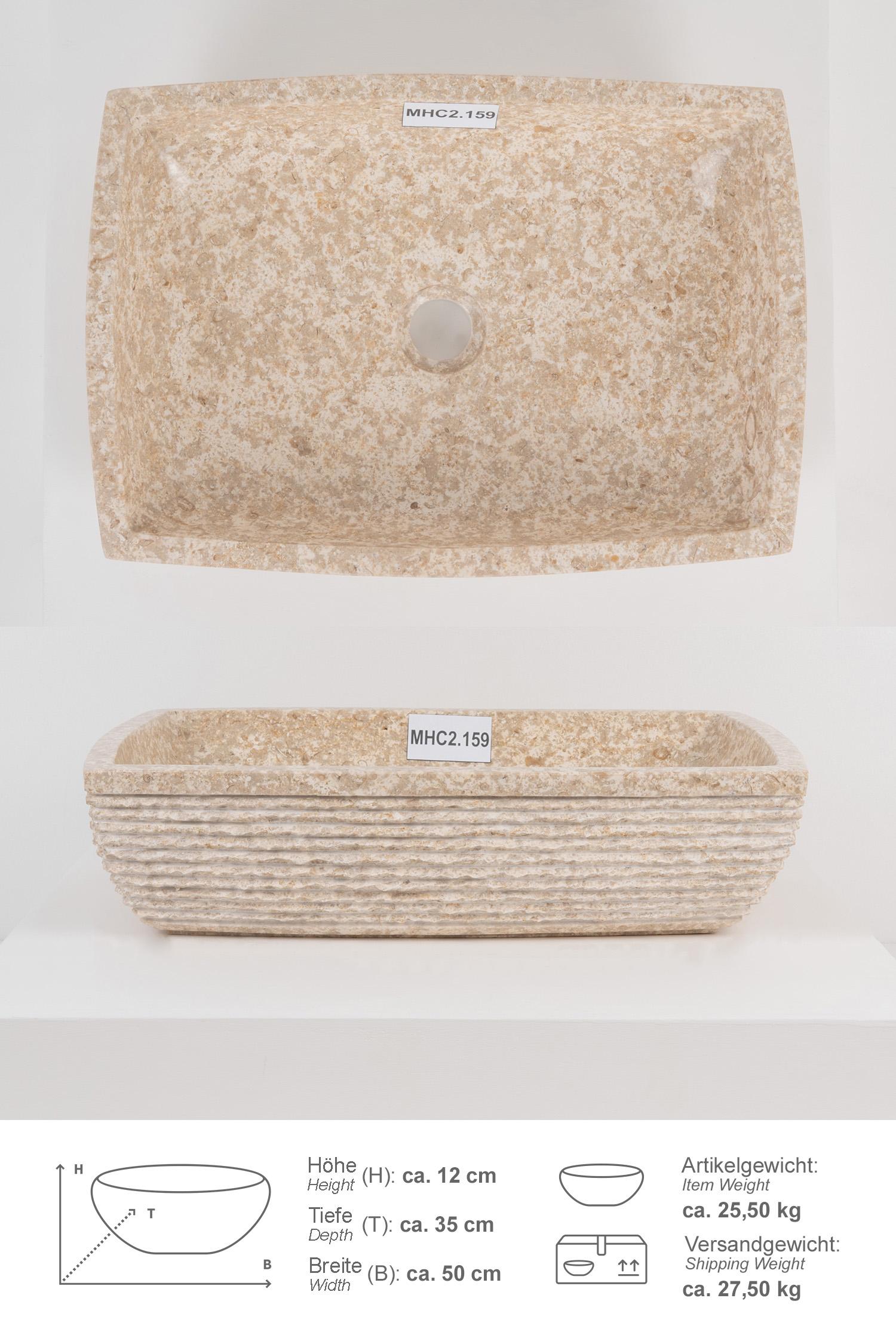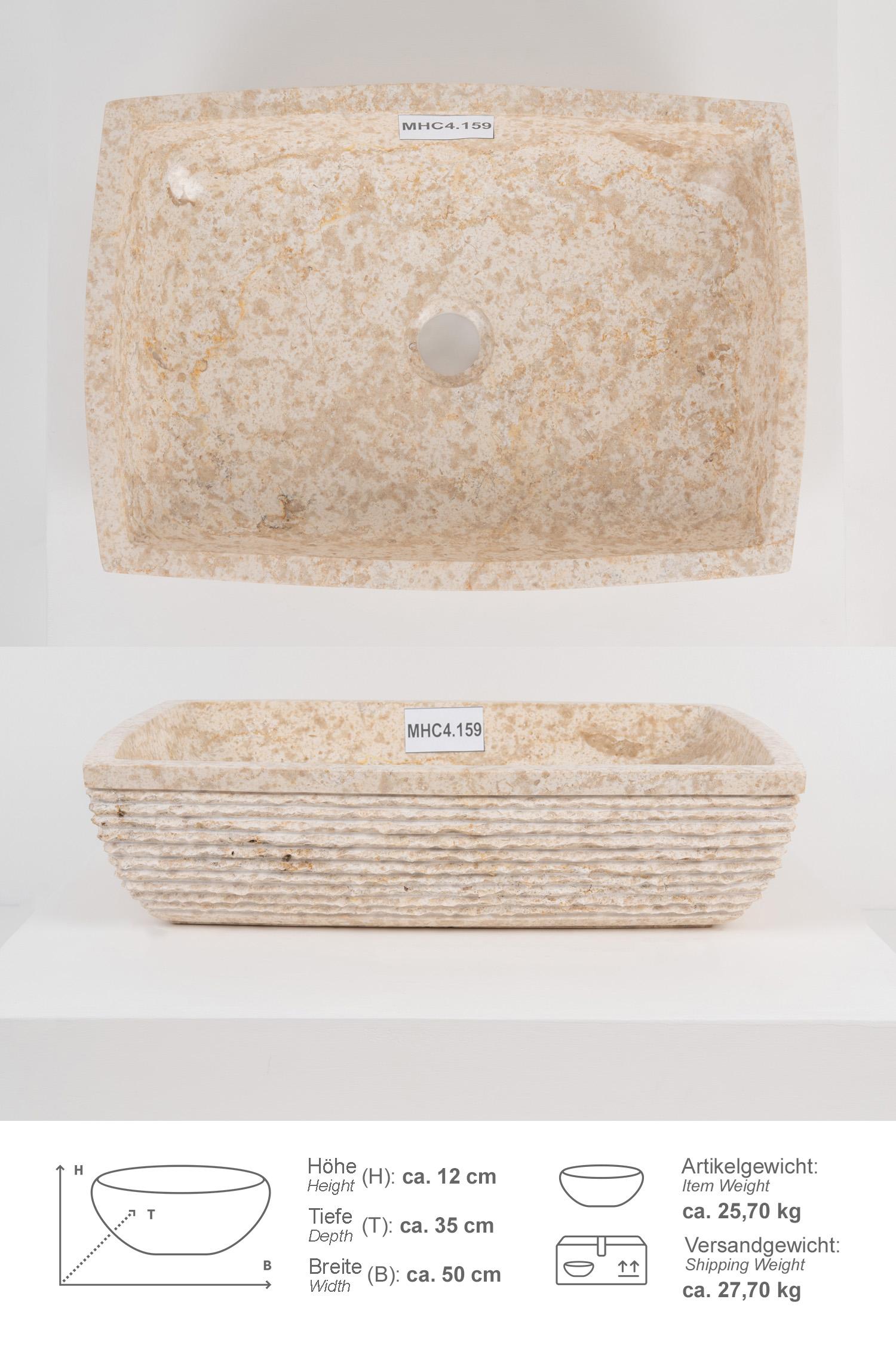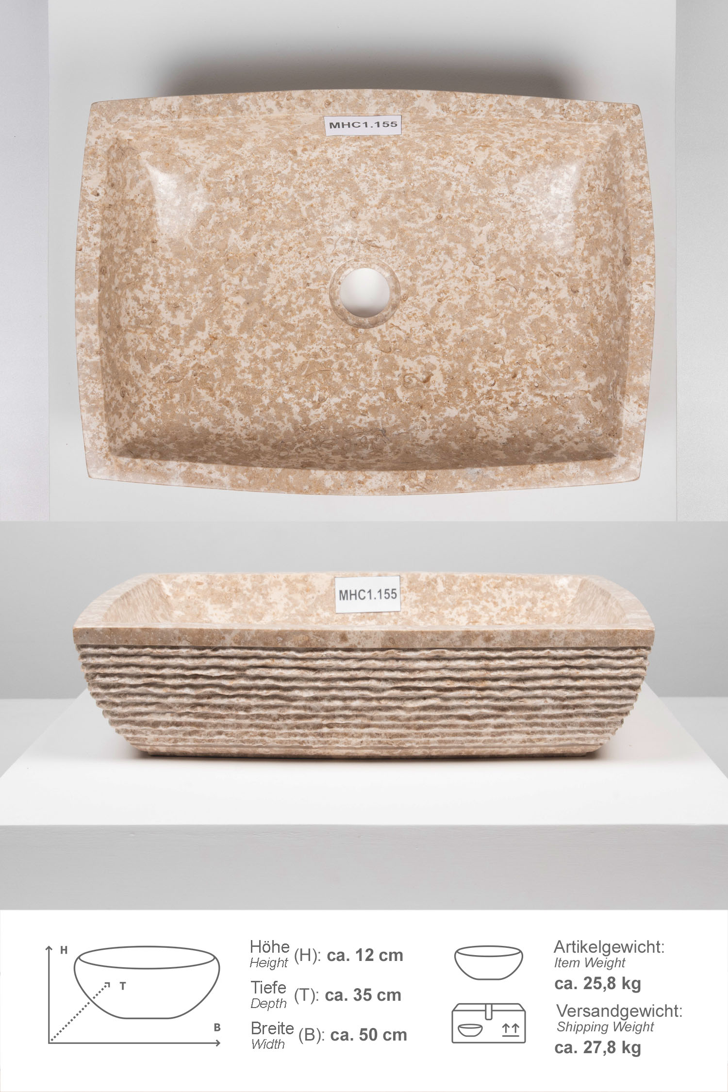 Marmor Steinwaschbecken MARA 50 cm creme rechteckig
